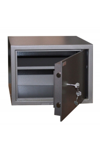 Сейф офисный мебельный КМ — 260 имеет цельносварную металлическую конструкцию. Изготовлен из стали толщиной 2,5 мм. Толщина двери — 5 мм. Имеет 1 ключевой замок CAWI (производство Германии).