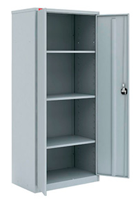 Шкаф металлический архивный. Предназначен для хранения архивов, офисной и бухгалтерской документации. Три регулируемых по высоте полки. Двери архивного шкафа ШАМ — 11/400 оснащены замком повышенной секретности (ригельная система). Покрытие — полимерное порошковое серого цвета (RAL 7035). В стандартную комплектацию шкафа ШАМ — 11/400 включены 3 полки и 1 ригельный замок.