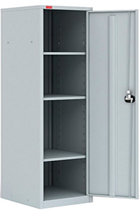 Шкаф разборный металлический архивный односекционный. Предназначен для хранения архивов, офисной и бухгалтерской документации. В отделении расположены три регулируемых по высоте полки. Двери архивного шкафа ШАМ — 12 оснащены замком повышенной секретности (ригельная система). Покрытие — полимерное порошковое серого цвета (RAL 7035). В стандартную комплектацию шкафа ШАМ — 12 включены 3 полки и 1 ригельный замок.
