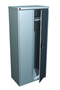 Шкаф металлический разборной односекционный, предназначен для хранения сменной одежды в офисах. В отделении находятся полка для головных уборов и перекладина для вешалки. Отделение шкафа оснащено замком повышенной секретности (ригельная система). Покрытие — полимерное порошковое серого цвета (RAL 7035). По внешнему виду идентичен архивному шкафу ШАМ — 11. В стандартную комплектацию шкафа ШАМ — 11.Р включены 1 перекладина и 1 ригельный замок.